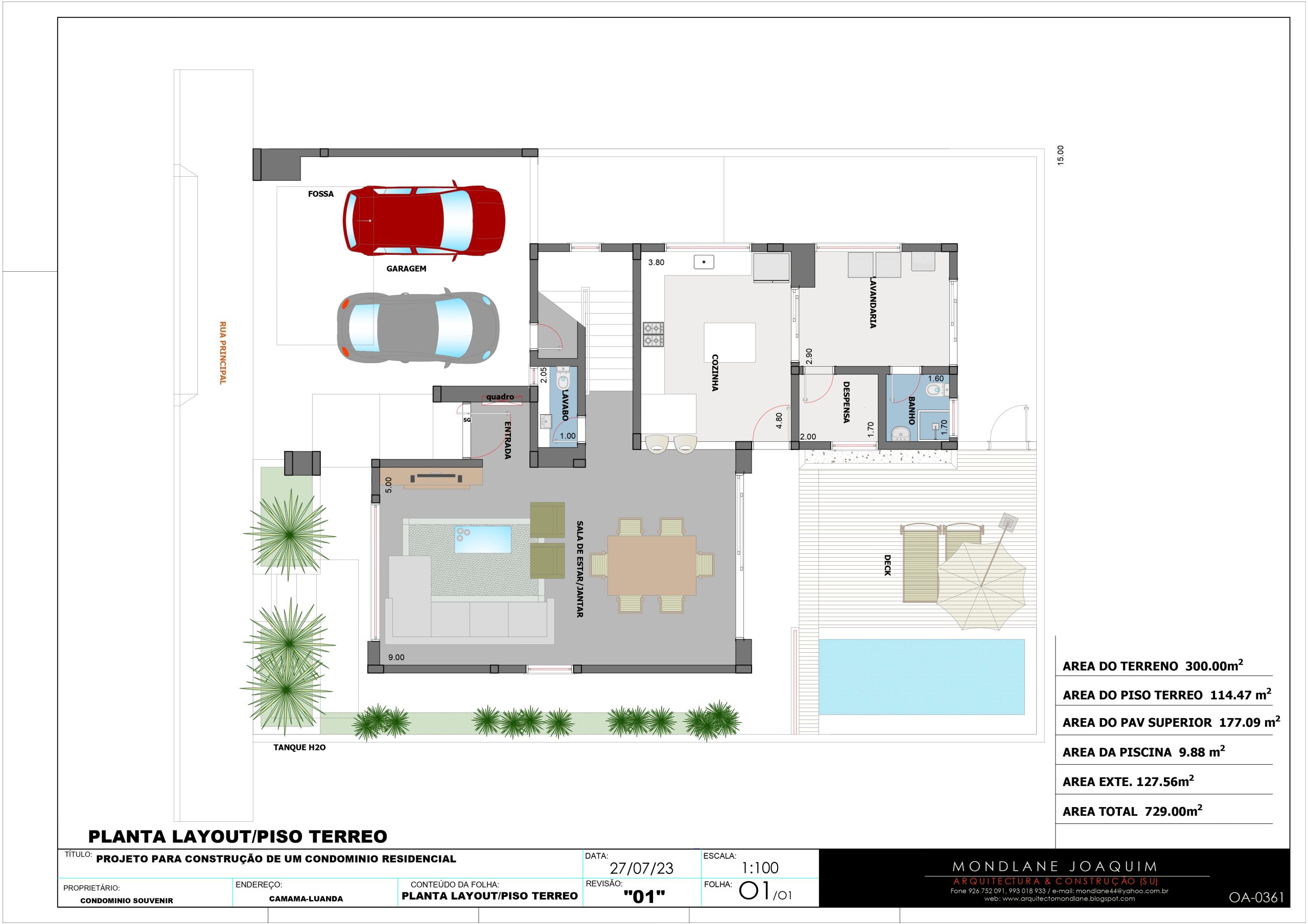 Residência com arquitetura moderna e localização privilegiada Piso Térreo Hall Entrada Sala comum Despensa Área de ...